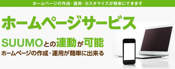 ホームページサービスとは、ホームページの作成・運用が簡単に出来る不動産業者様向けホームページ作成サービスです。