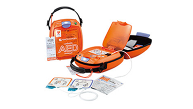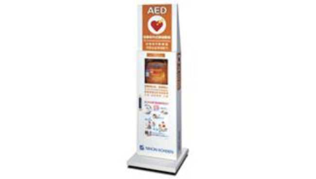 日信電子サービスは、医療機器メーカーの日本光電とともに、使用される人に左右されにくい製品開発と、いつでもAED(自動体外式除細動器)を使用できるようにするための環境向上に取り組んでいます。