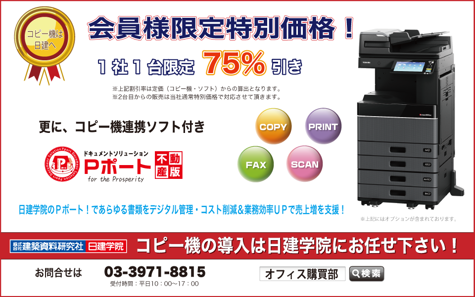 これ以外にも宅建協会会員向けに携帯電話(ハト電話)、コピー機を会員特別価格でご提供させていただいております。