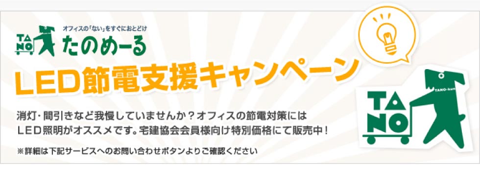 LED節電支援キャンペーンを展開中。オフィスの節電対策にLED蛍光灯を会員特別価格で購入できます。